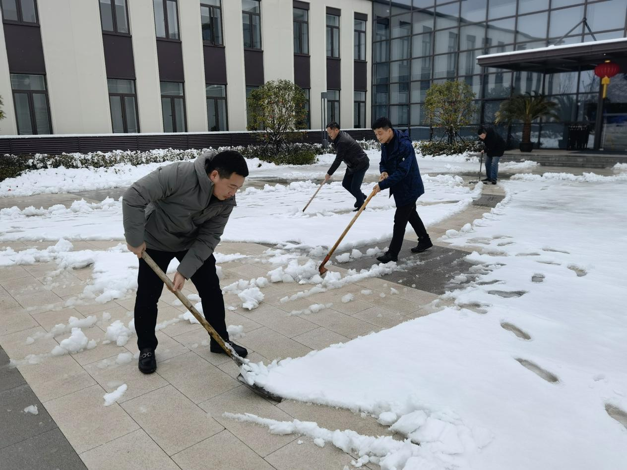 會(huì)后,領(lǐng)導(dǎo)班子成員秉承干在實(shí)處、走在前列的精神,帶領(lǐng)各部門工作人員在科學(xué)島園區(qū)開展義務(wù)勞動(dòng),清除路面積雪,確保道路交通順暢、員工出行安全。道路寒風(fēng)凜冽,路面積雪厚重,尤其是隨著氣溫驟降,增加了掃雪除冰的難度。但在領(lǐng)導(dǎo)們的帶領(lǐng)下,干部職工們個(gè)個(gè)干勁十足,掃帚、鐵鍬、鐵鏟齊上陣,揮鍬、破冰、鏟雪、清地……經(jīng)過連續(xù)數(shù)小時(shí)的奮戰(zhàn),道路、綠化帶等園區(qū)內(nèi)的堅(jiān)冰積雪被逐漸清掃干凈,確保了道路的暢通和安全,切實(shí)保障科學(xué)島展廳工作區(qū)進(jìn)入接待狀態(tài)。