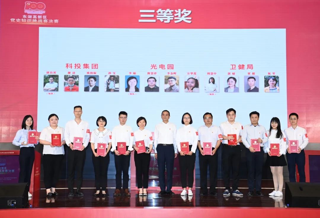 5月21日下午,東湖高新區黨史知識競賽挑戰賽決賽舉行,市紀委監委派出東湖高新區紀檢監察工委書記李軍,市委宣傳部副部長、市黨史學習教育辦公室宣講工作組組長吳天勇,東湖高新區管委會副主任宋治平、張傳遠,東湖高新區管委會總經濟師李首文,東湖高新區黨工委政法委副書記曾祥華,市工科院黨委書記、院長程百煉出席活動。